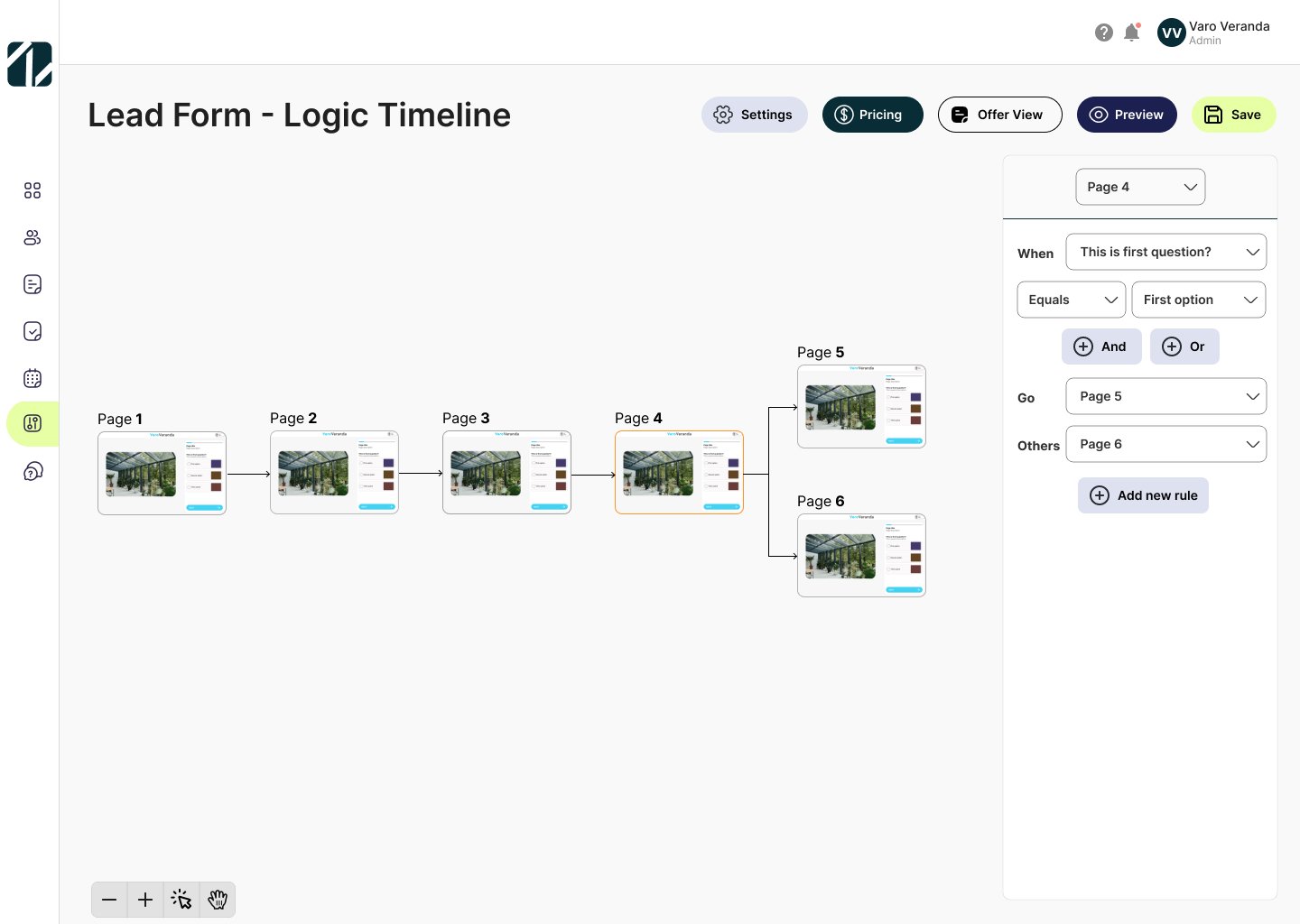Beyond simple inputs, the configurator includes an infinite- canvas logic builder that lets users design advanced rule structures with ease. Conditions, dependencies, and dynamic flows can be visually arranged, enabling forms to adapt based on user answers. This logic-first approach ensures smarter, more personalized interactions, turning basic lead forms into rich, guided experiences that feel intuitive for end users.